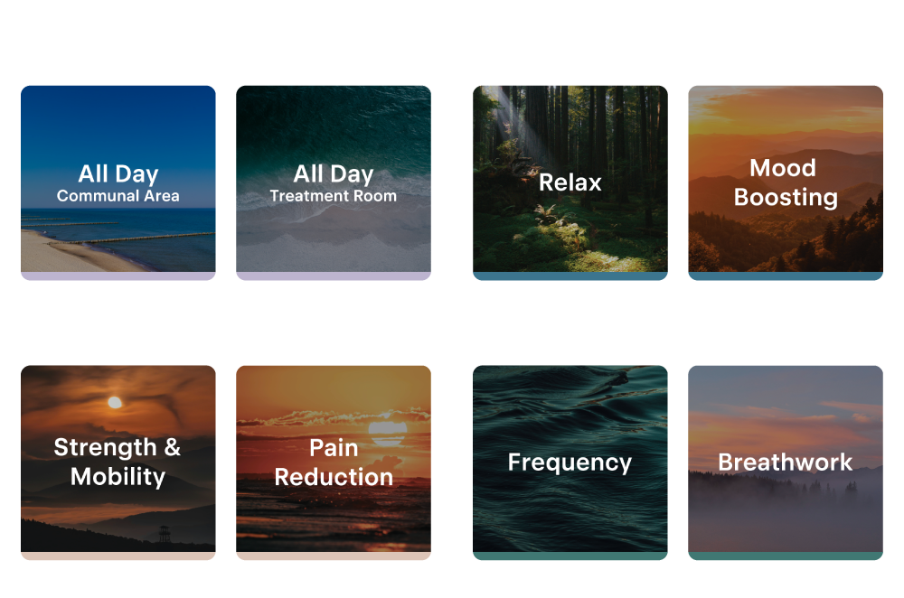 Turn underutilized space into revenue driving, touchless treatment zones. Pair our outcome-focused soundscapes with existing equipment such as relaxation beds, vibroaccoustic therapy or salt rooms. These can be offered as premium bolt on experiences that add a new revenue stream to your business and enhance the ROI of investments made in equipment old or new.