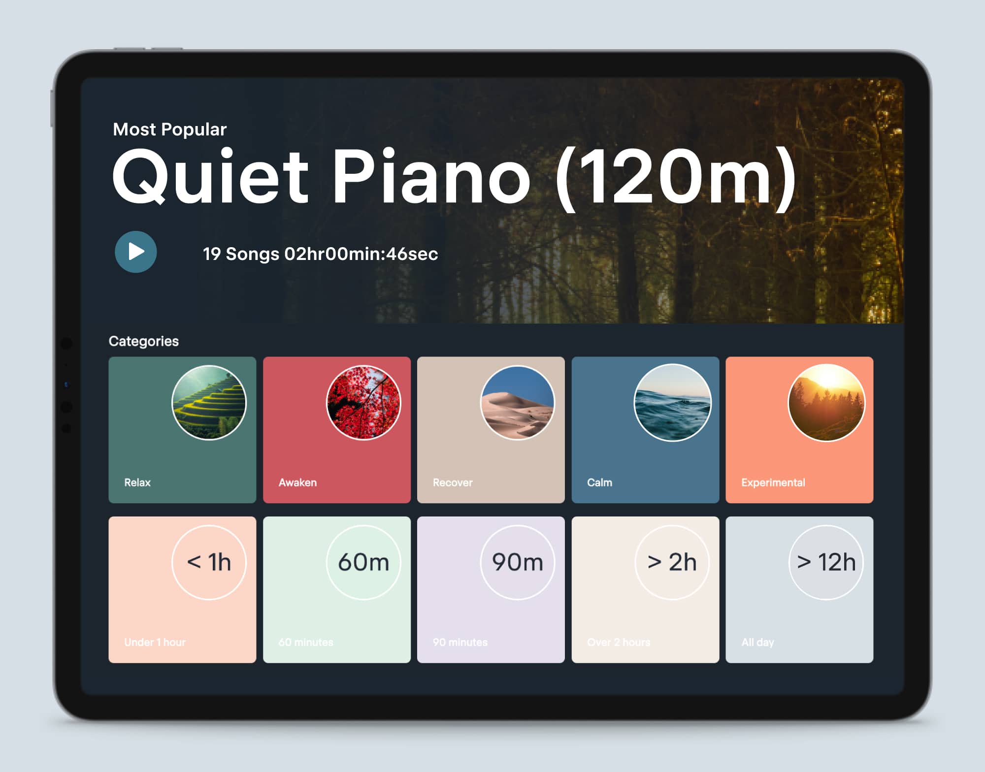 - All playlists are categorized by mood and duration, enabling therapists to personalise the music to the treatment or client outcome at the touch of a button.