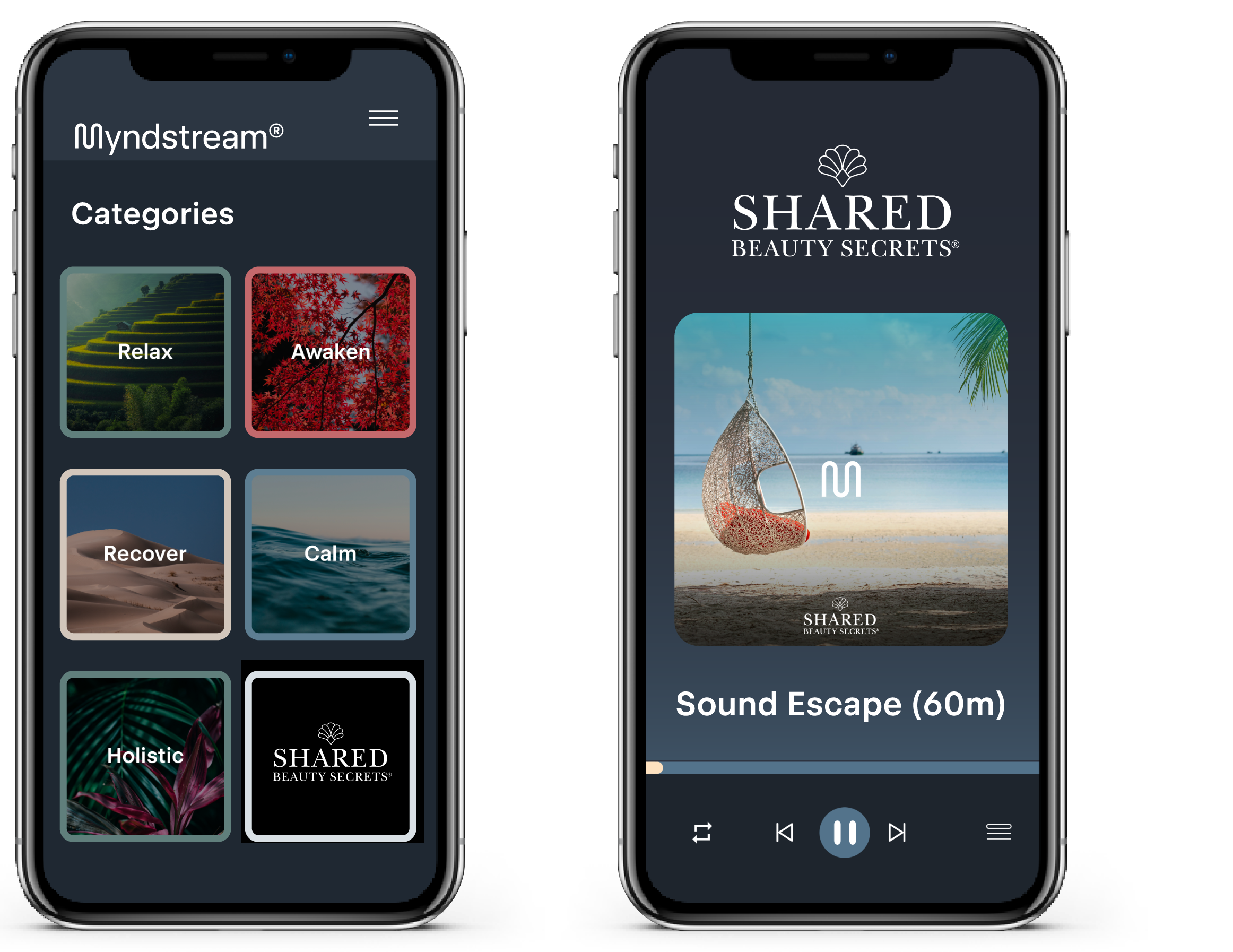 Myndstream and Shared Beauty Secrets share a passion for the power of multisensory treatments – that’s why we’ve collaborated to create a new massage treatment together called Sound Escape. The treatment combines the expertise for touch from Shared Beauty Secrets with a bespoke soundscape rooted in science from Myndstream. By combining touch and sound in this way, you can deliver even deeper relaxation benefits for your clients.