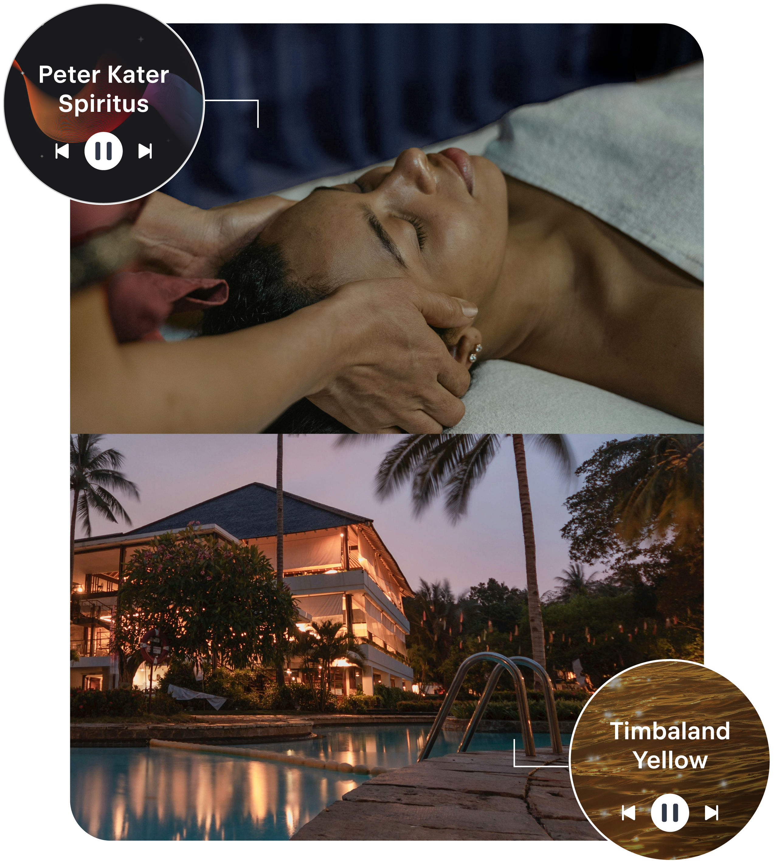 Surprise and delight guests across every touchpoint with unique audio experiences that enhance personal wellbeing and leave a lasting impression of your brand.